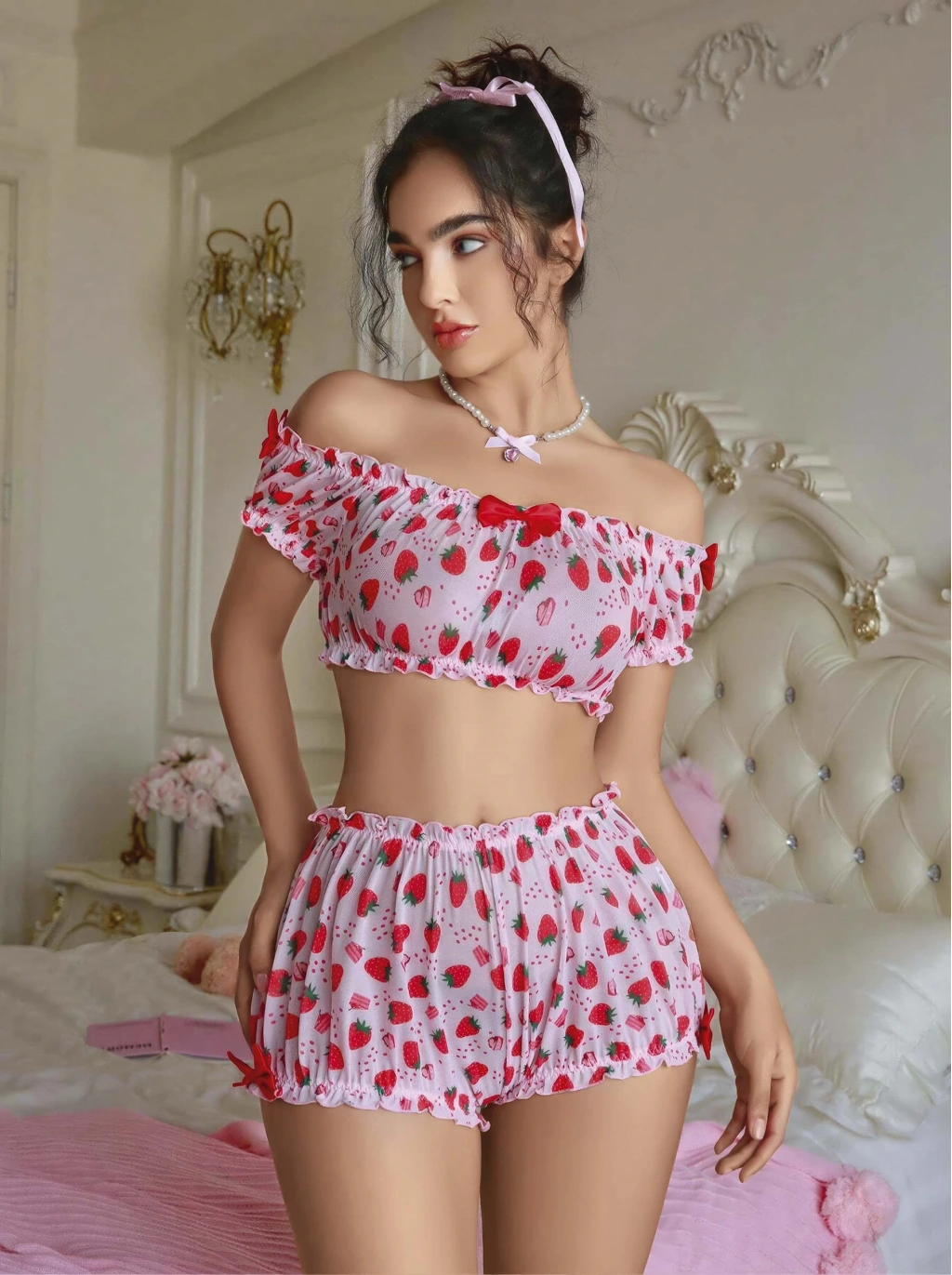 Kadın Kalpli Kırmızı Dantelli Balenli Sütyen Külot Takım