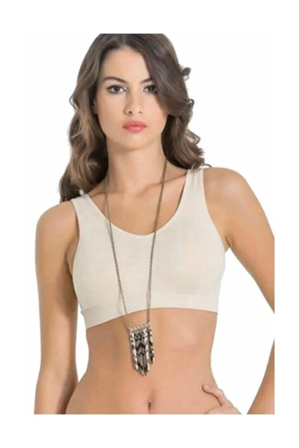 Günlük Kullanıma Uygun Ekru Zincir Aksesuarlı Yarım Push-Up Sütyen,Destekli, Düşük Dekolte Uyumlu