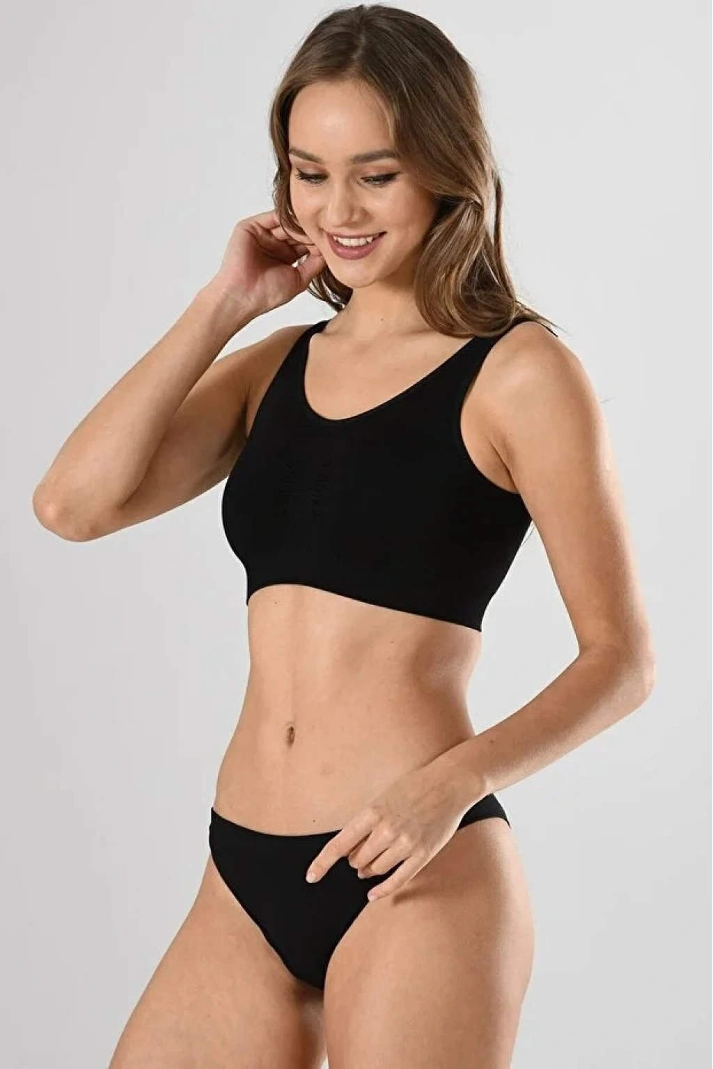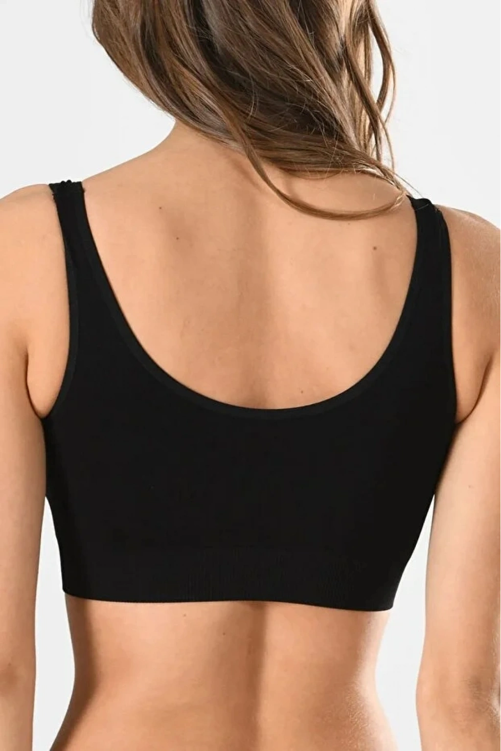 Kadın Siyah Kalın Askılı Çıkarılabilir Pedli Örme Seamless Dikişsiz Basic Büstiyer