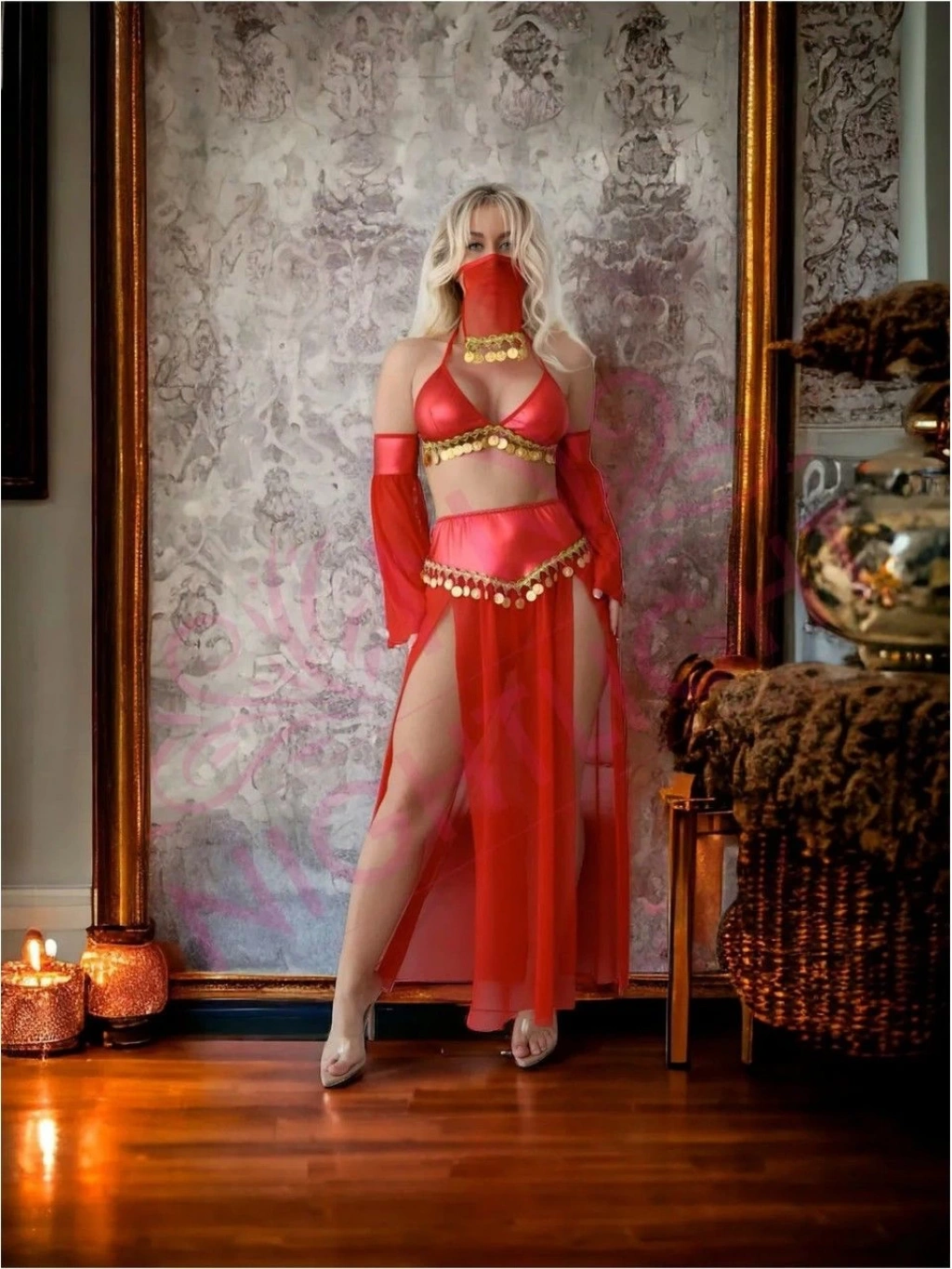 Altın sarısı aksesuarları ile birlikte şıklığınıza şıklık katacak seksi bir kostüm
